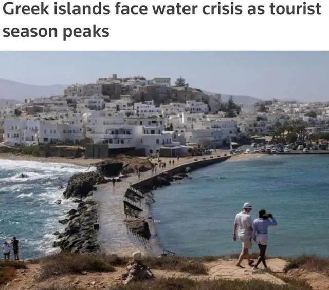 高温天气也加剧了一些地区的用水危机。希腊纳克索斯岛是爱琴海上最受游客欢迎的岛屿之一,但近期由于高温干旱,这个岛屿的水资源短缺问题变得愈发严重。