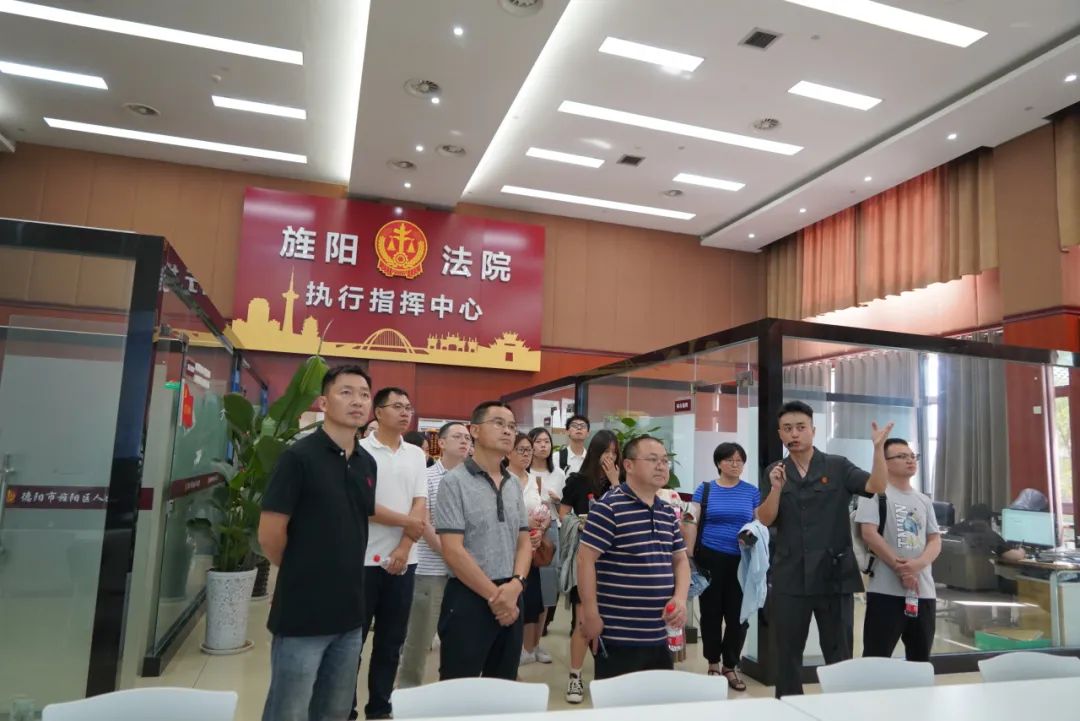 在法院工作人员带领讲解下,一行人实地参观了旌阳区法治会客厅、警务保障中心、执行服务中心、执行指挥中心、旌阳区图书馆法院分馆等场所。