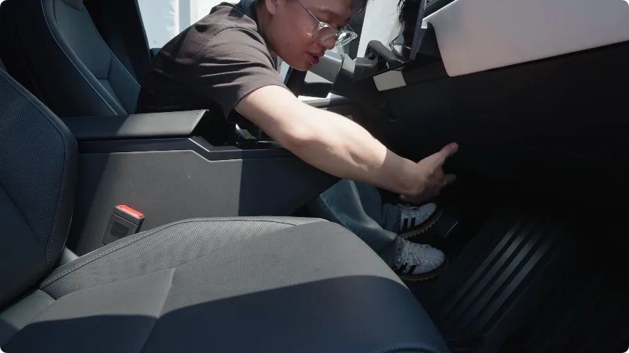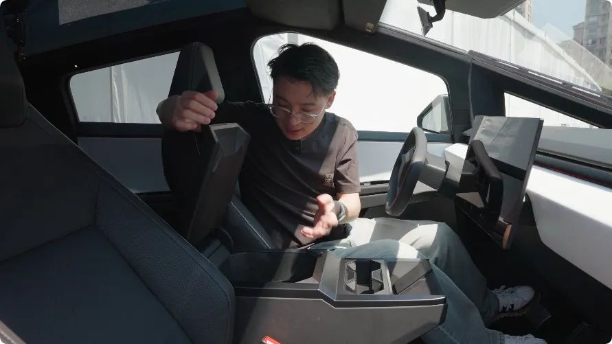 可以发现,这里也有一块显示屏,可以调空调、座椅,和毛豆 3 类似,算是特斯拉老传统了。