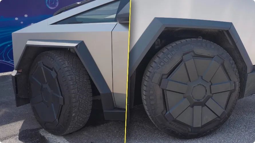为啥这么灵活呢?咱们之前说的后轮转向,这台 Cybertruck 上也有。