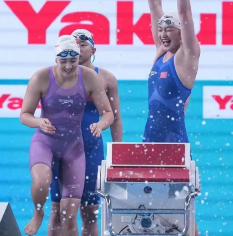2024年2月,世界游泳锦标赛,中国队艾衍含(左)与队友在比赛后庆祝。新华社艾衍含出生于2002年,6岁时父母送她去练习游泳。寒暑假期间,她几乎每天泡在游泳池里。尽管如此,艾衍含的学习成绩十分出色,她还曾因学习成绩和运动成绩同样突出,被评为武汉市十佳少年。