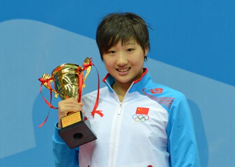 2013年10月,中国游泳选手邱钰涵在展示奖杯。新华社2023年8月初,邱钰涵(2014年南京青奥会4枚金牌获得者、2015年喀山世界游泳世锦赛冠军,上海交通大学在读硕士研究生)接受采访时表示,“我的运动员经历比较特别。我1998年出生,直到2010年10月才正式开始专业游泳训练。到参加2012年伦敦奥运会,只用了20个月,成为当时中国代表团最小的运动员。那一年,我刚满14岁。”