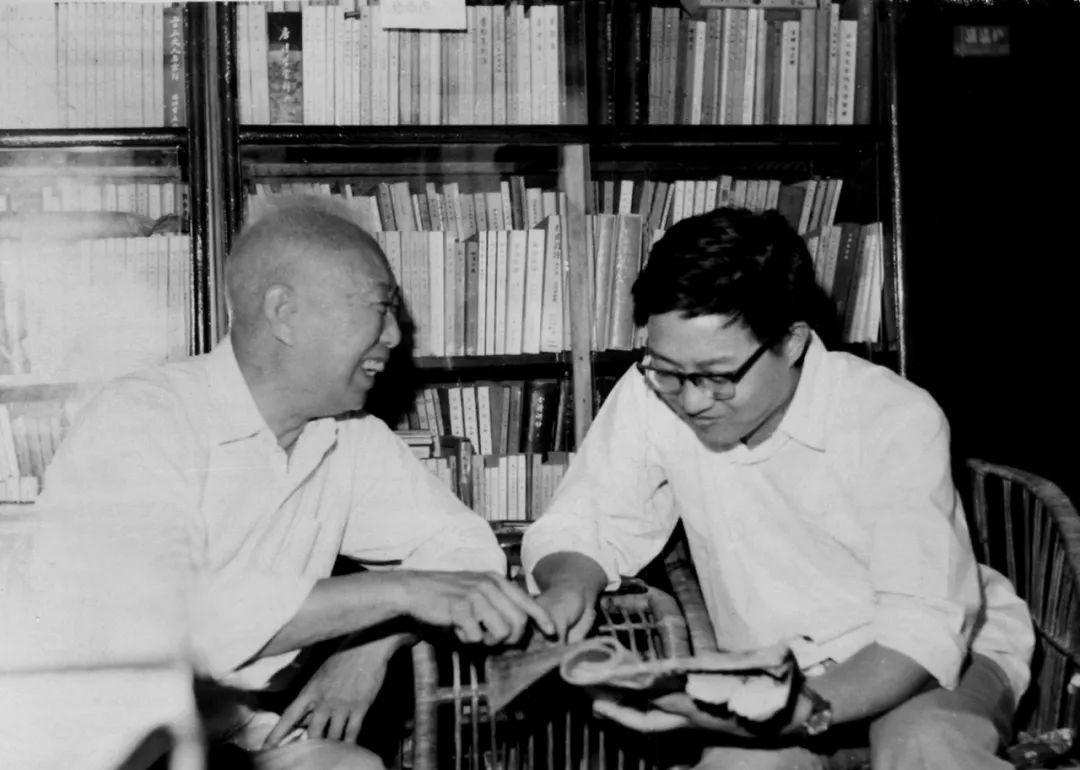 1982年在程先生书房承训我说我与程先生成为师生是前生的缘份,可以从两个方面来说明。首先,我进入中国古代文学这个专业,并不是我深思熟虑的主动选择,是命运之风把我刮到那里去的。其实程千帆先生也是如此。程先生1932年在南京考大学, 考上了金陵大学。金陵大学是南京大学的一半前身。什么叫一半前身呢?我们南京大学是民国时的中央大学和金陵大学两个学校合并而成的。金陵大学是一个教会大学,美国的教会来华创办的。程先生考上金大的时候,他要想读什么系呢?他要想读化学系。他在南京金陵中学读书的时候,碰到了一个非常优秀的化学老师。他非常崇拜那个老师,自己也爱上了化学,所以考金陵大学也是想读化学。那个时候的教会学校,报名的时候十分宽松,就是新生可以自由转系。报到那天,程先生来到金大。那时候大学的招生规模都比较小,金陵大学一年就招几百个学生。几个老师坐在一张长桌子前面,各个系的新生来报到,交学费。程先生一看化学系学费很贵,要100个银元一年。程先生家境清贫,交不出100银元的学费。他就问管报到的老师,我能不能选一个学费便宜点的系来读。老师说中文系学费最便宜,程先生当场决定改上中文系。这一改就改出了一个国学大师。要不是程先生当年从化学界转到中文系,要不是我从最早的理工科转到外语系再转到中文,我们俩就不会成为师生了,这是我们的第一重缘分。