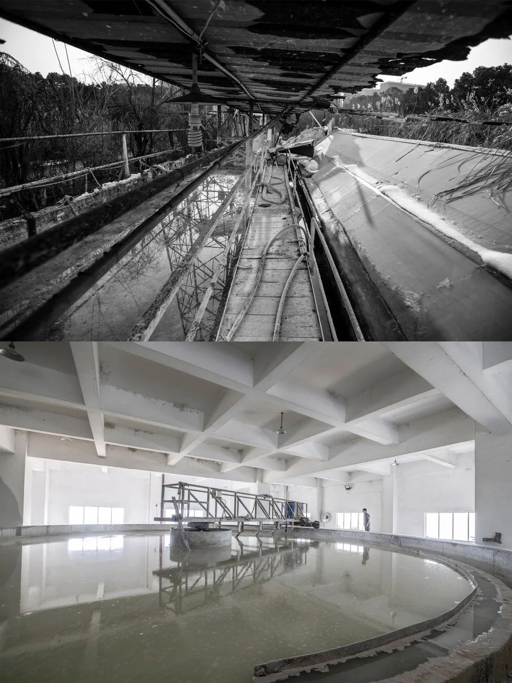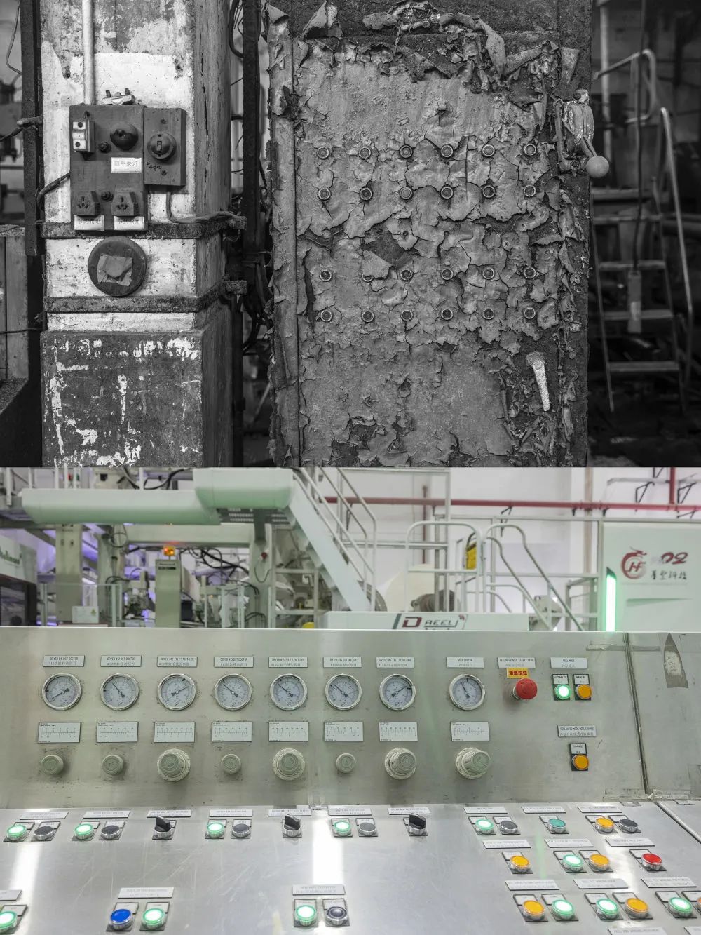 上图:1990年代,杭州老华丰的污水处理设备简陋破旧。下图:2022年,安吉新华丰的污水处理设备先进智能。华丰人在这条道路上艰难且坚定地前行,而我要记录的不只是百年来,这里的落后与先进,留恋与欣喜。我要留存的也不只是从杭州到安吉的迁徙路途,更是这个工厂的重生之路,这个城市的发展之路,这个民族的复兴之路。