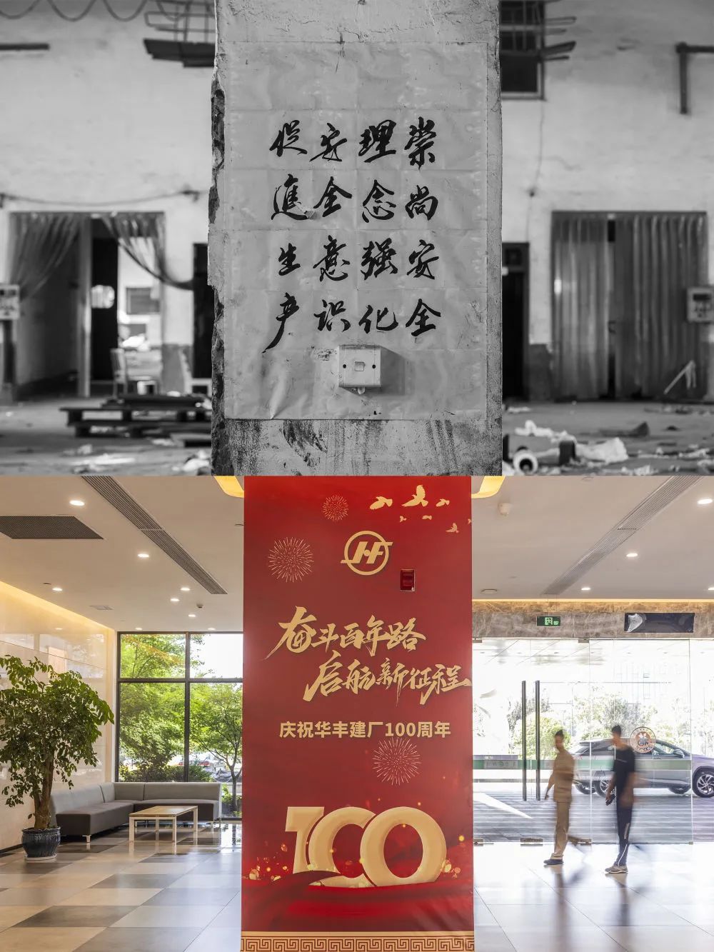 上图:2019年3月,杭州老华丰,即将被拆除的一个生产车间。下图:2022年6月,安吉新华丰,新工厂的“职工之家”。