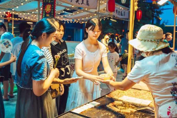 香气四溢的烧烤、甜品美食,呷一口冰啤酒、冰饮料,吹着徐徐晚风,惟美食与夜市不可辜负。一个接一个的烧烤摊,吹出阵阵烟火气。一个接一个的夜肆小摊,摆出浓浓集市味。一桌接一桌的啤酒烧烤龙虾宴,吃出幸福生活美。