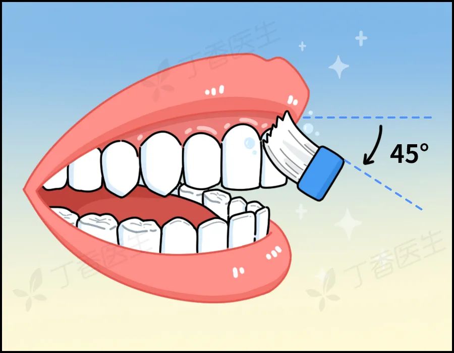 图片来源:丁香医生团队如此,可以让刷毛有效接触牙齿、牙龈的交界处,彻底清洁死角。