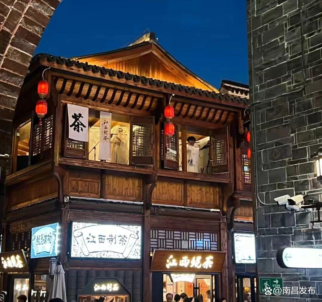 街区重视与游客的互动感。有大饭店里的“王勃”与游客对诗,老熹门的说书人等,当然,最火爆网络的当属茶楼里蒙面演奏的“二胡小姐姐”,每晚楼下都挤满了乌泱泱的人群。这种重现“古代繁华”的景观成为不少游客要来南昌看看的理由之一。