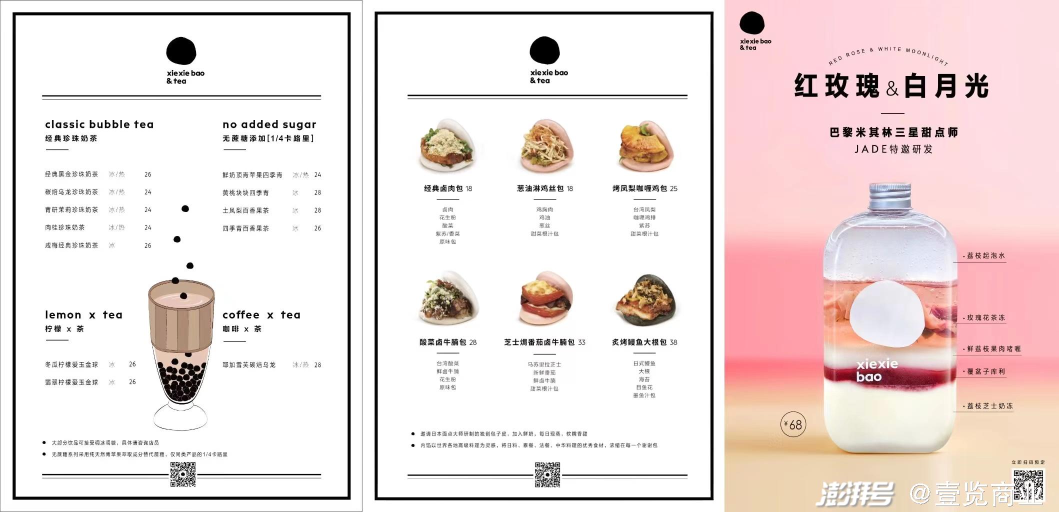值得一提的是,此前,谢谢茶的价格并不低,甚至还拉升至约70元。2019年8月,谢谢茶推出瓶装奶冻茶,将价格拓宽至68元,宣称“与巴黎米其林三星的甜点师jade共同研发”,限量、限时、限门店发售。除此以外,谢谢茶还推出了无花果鹅肝牛排包,售价45元。据谢谢茶推文信息,其产品价格多集中于20-40元。