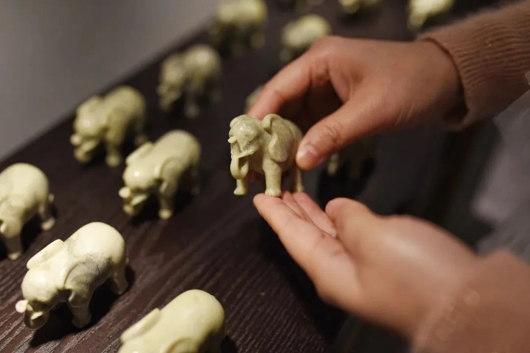 在浙江省工艺美术大师林文波工作室内的长桌上,摆放着琳琅满目的印石,不仅有仿照“十二兽首”雕刻而成的文创石雕,还有融入蜗牛、幼猫等萌宠元素的玉雕作品,这些“高颜值”的新潮文创摆件受到了许多年轻消费者的青睐。