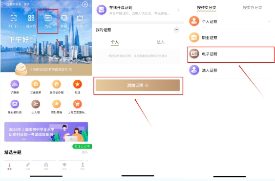 成功出具证明后,可通过首页“亮证”-“添加证照”,在“电子证照”栏进行添加,下次办理相关事项一键“亮证”,再也不用到处翻找证明啦~