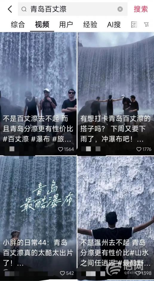 近日,一条在水库下与瀑布合影的视频在网络视频平台火爆,该视频拍摄效果与浙江省百丈漈瀑布相似,打卡点位于崂山区雕龙嘴水库,更有网友称“不是百丈漈去不起,而是青岛分漈更有性价比。”在多个视频评论区均有网友晒出打卡合影,也有不少没去过的在求分享攻略。