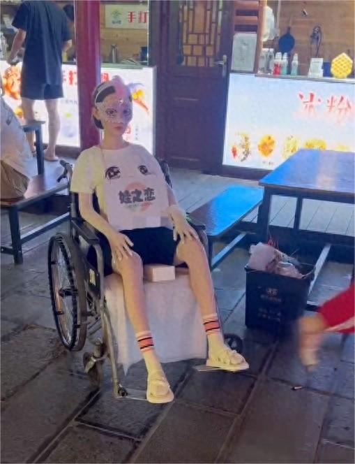 原标题《湖北恩施一商家用硅胶娃娃坐轮椅在路边揽客被指不雅观!商家回应:不暴露就没事》