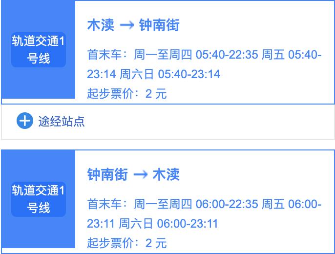 1号线当天运营时间:去往钟南街方向的末班车发点为23:14,去往木渎方向的末班车发点为23:11。