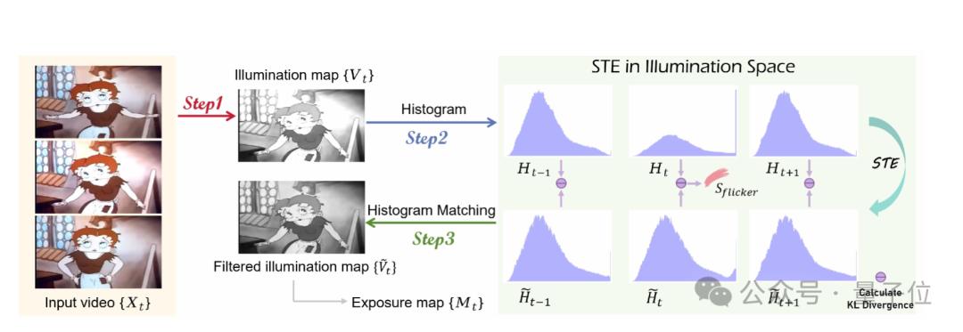 △ 图片由Claude 3.5 Sonnet生成而STE通过分析视频中每一帧的直方图,然后用一种叫做高斯滤波的方法来平滑这些直方图,先初步矫正直方图分布突变的图像帧,能够让画面看起来更加稳定,减少闪烁。