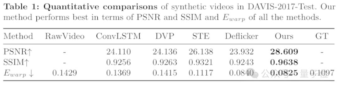 BlazeBVD在PSNR(峰值信噪比,数值越高表示视频质量越好)和SSIM(结构相似性指数,数值接近1表示视频质量越好)上得分较高,且在Ewarp(数值越低,视频越连贯一致)得分较低。一句话,BlazeBVD超越了已有基线方法。