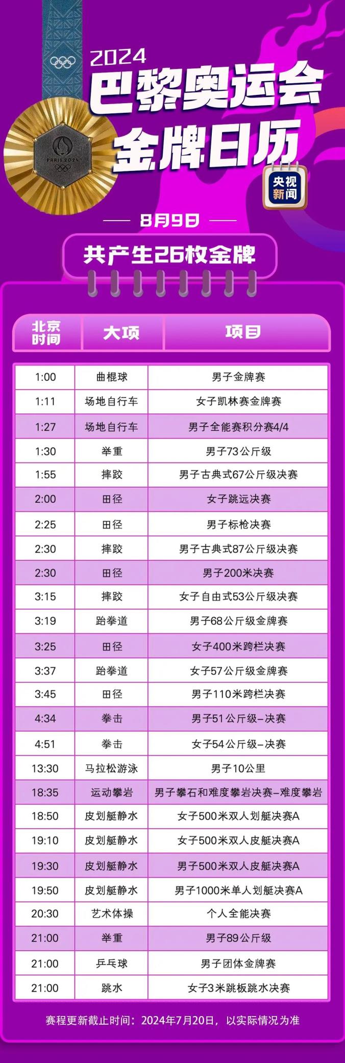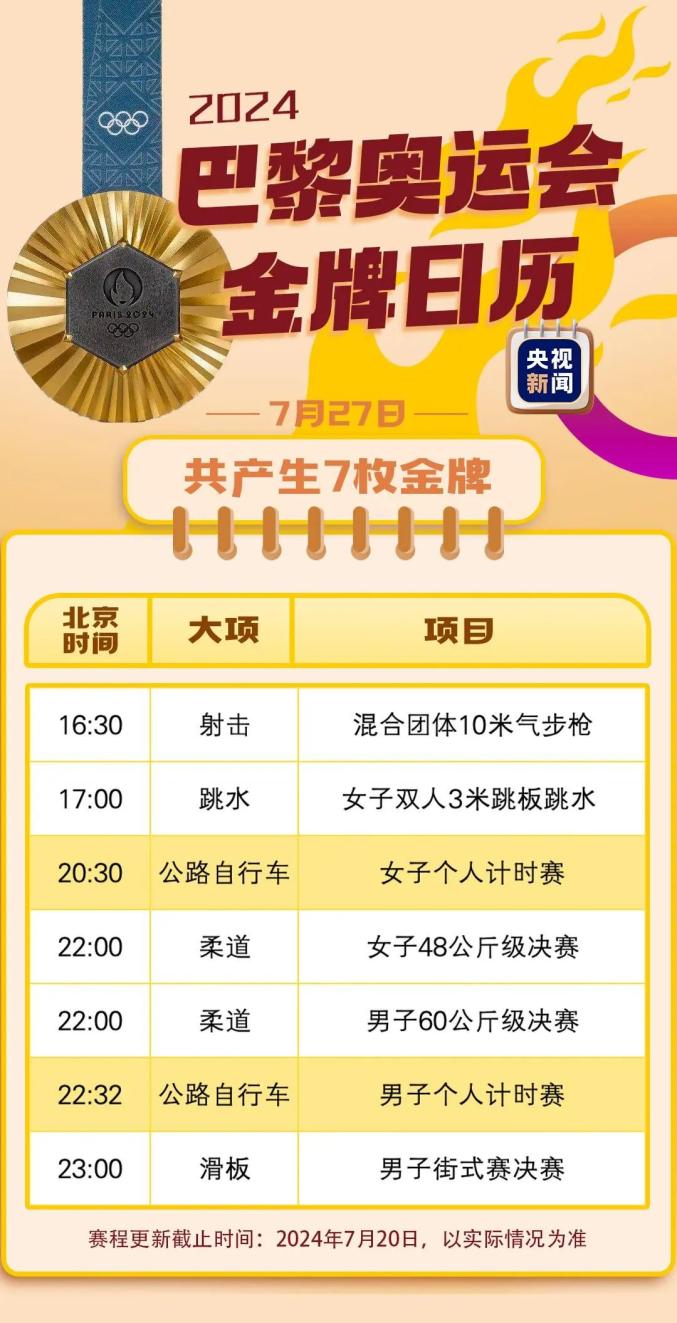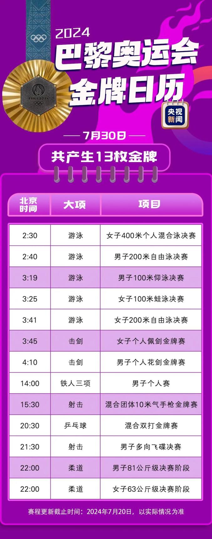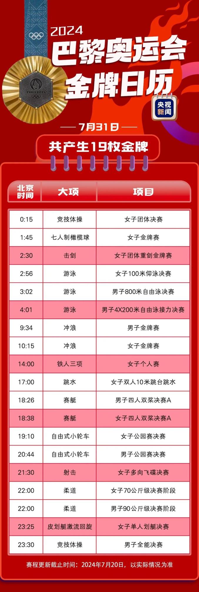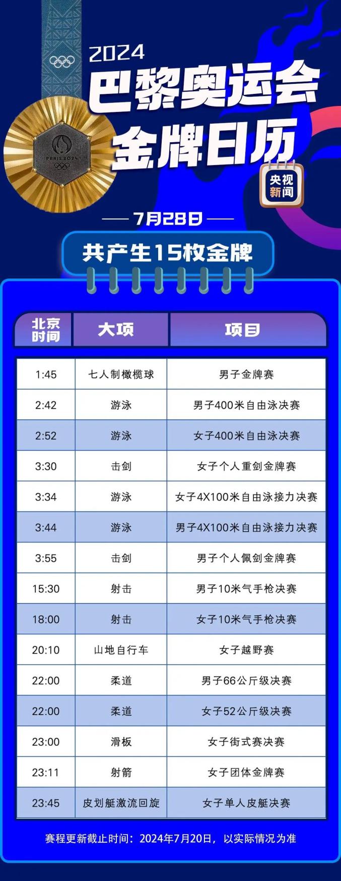 原标题:《最新!巴黎奥运会金牌赛事日历来了》