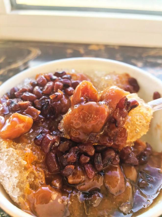 老味刨冰绝对是天津人夏天的消暑首选。这款刨冰的主料是红果(山楂)、杏、酸磨糕和红豆,杏干的酸,酸磨糕的酸,红果的酸,层层酸味混合搭配甜甜糯糯又香醇清爽的红豆,让人越吃越上瘾。