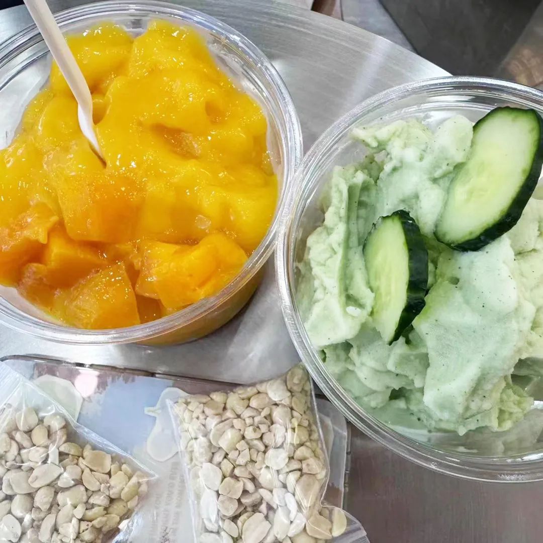 芒果味的里面是真的有芒果果肉,热带水果的香气浓郁到爆炸,冰冰凉凉的口感和质地,完全就像在吃冰沙版芒果糯米饭,不!甚至更清爽,更合我们的口味。
