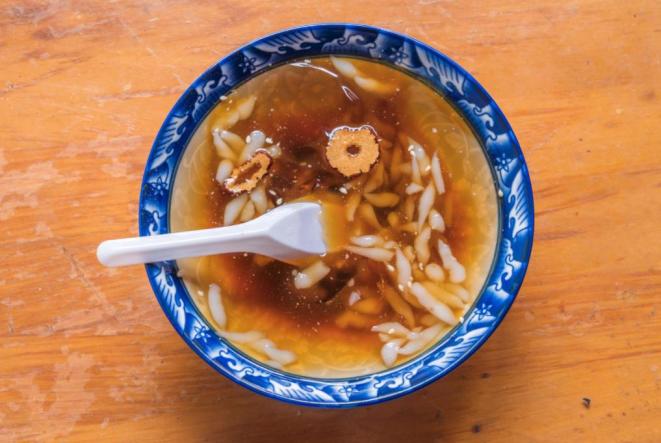 潮汕人的夏日消暑圣品,首推五果汤。传统五果汤为薏米、桂圆、莲子、白果、百合,但实际数量可以不止5种,也不用非得局限在这5种食材。可按个人喜好自由搭配鹌鹑蛋、银耳、姜薯片等。但无论加多少料,它还是称为五果汤。