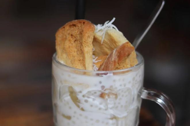 泡鲁达在云南本地算是一种街头甜品,街头巷尾的糖水铺里就有卖。泡鲁达的食材并不固定,但不管是多复杂或多简单的食材,都少不了面包干、牛奶/椰奶和椰丝。