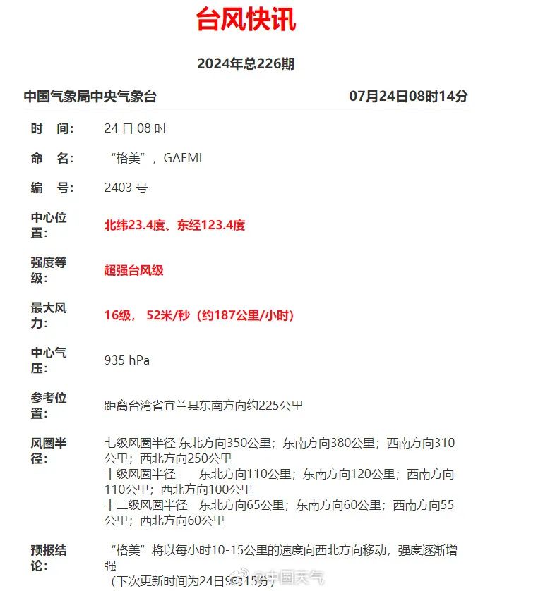 资料/中央气象台、中国天气网、市气象局、浙江天气原标题:《16级!刚刚,“格美”加强为超强台风!今起影响浙江》