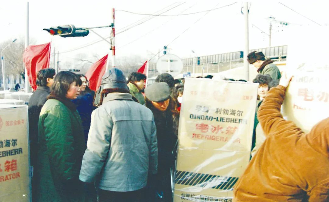 20世纪80年代消费者抢购琴岛—利勃海尔冰箱的场景。