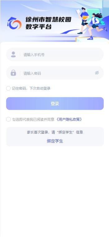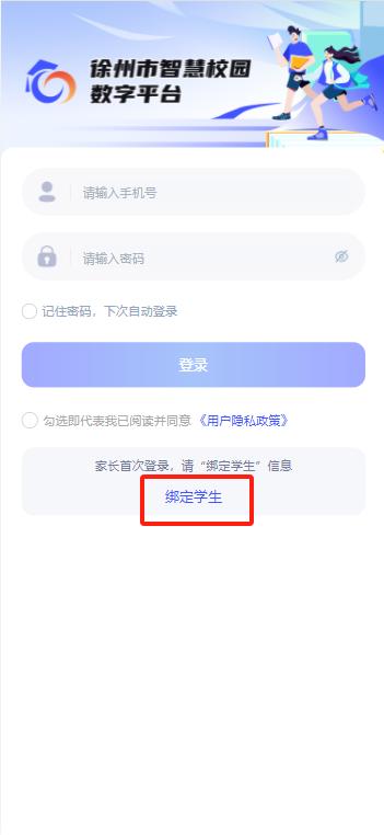 首次使用系统的家长,需要先绑定学生信息,点击页面中间位置的【绑定学生】按钮,填写学生信息和家长信息来绑定学生。