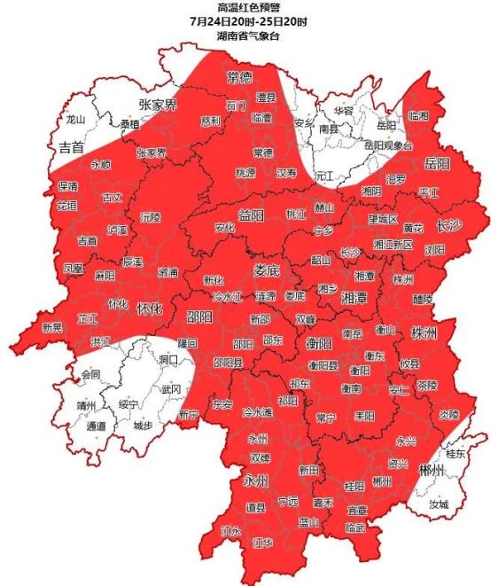 湖南省气象台07月24日16时发布高温红色预警: