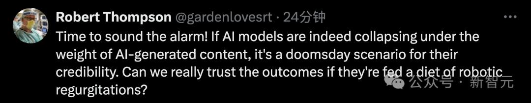 「如果大模型真的在AI生内容的重压下崩溃,这对它们的可信度来说就是末日了。如果它们吃的是机器人的反刍的内容,我们真的能相信LLM的输出吗」?