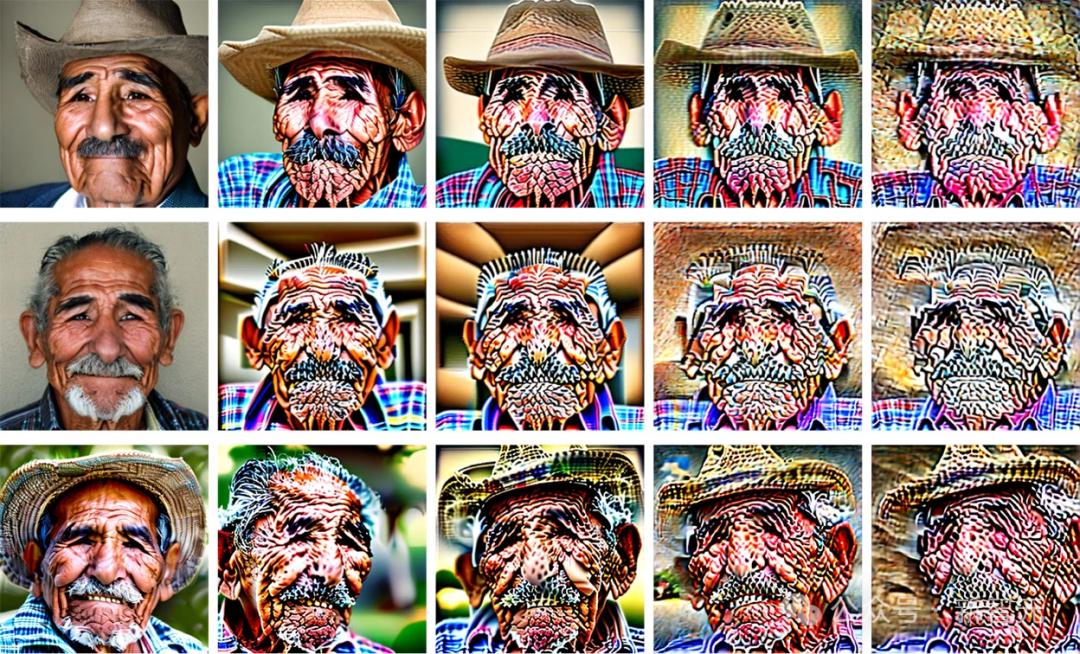 此外,2023年来自斯坦福和UC伯克利的一项研究中,作者同样发现了,LLM在少量自己生成数据内容重新训练时,就会输出高度扭曲的图像。
