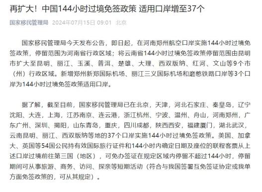 河南加入144小时过境免签“朋友圈”啦!