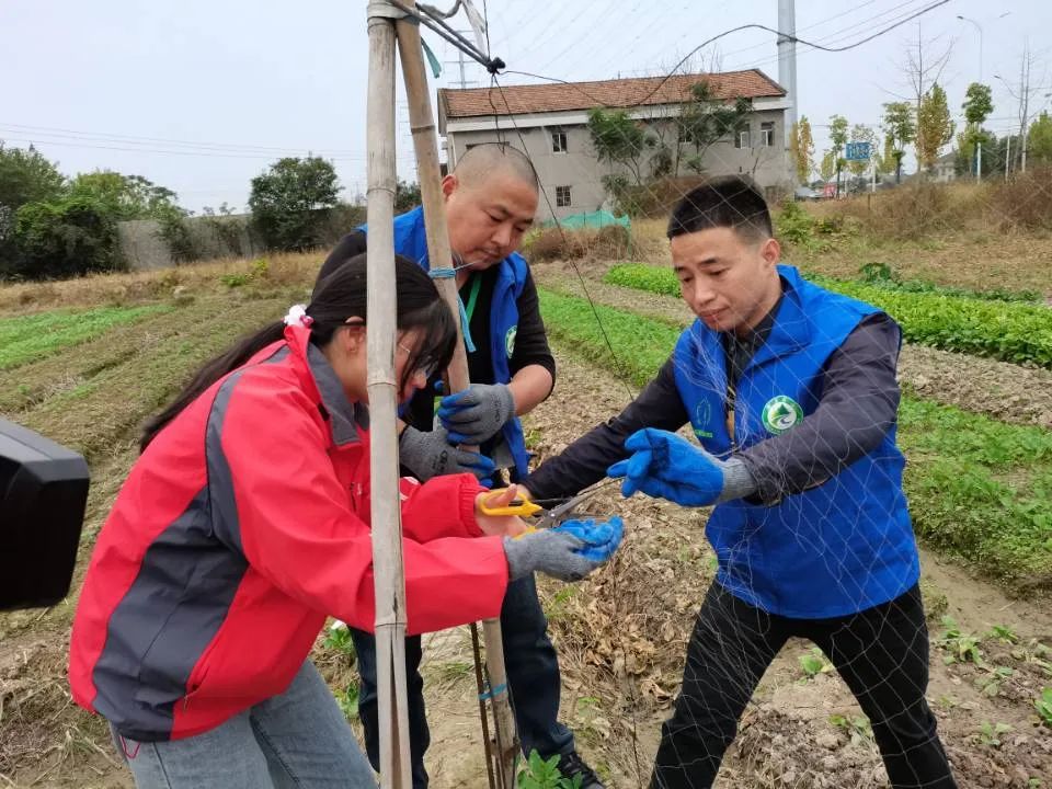 湖南文理学院护鸟营志愿者在朱天鹏(右一)的带领下联合当地环保组织在武陵区附近的村庄拆除鸟网。2015年,朱天鹏和同学们创立了湖南文理学院生态环保护鸟营。团队刚开始只有几人,现在已拥有志愿者800多名。他们围绕河流巡护、鸟类守护、绿色传播等方面,开展了各类生态保护活动700余场。