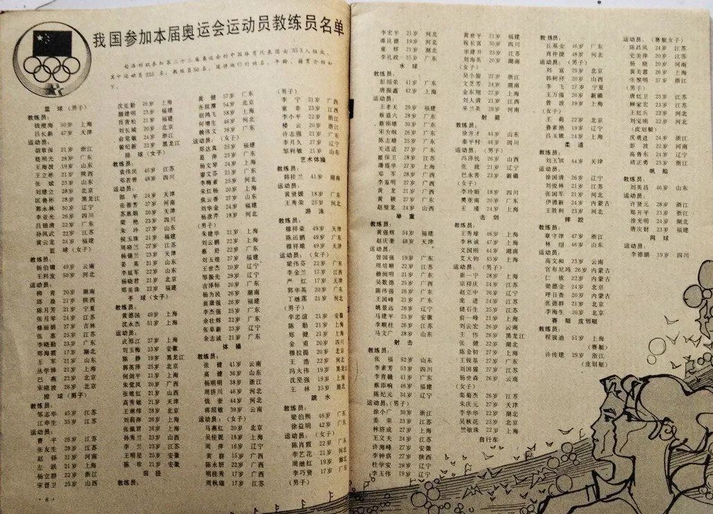 中国参加洛杉矶奥运会运动员教练员名单刊于《新体育》(1984年7月 奥运会特辑)