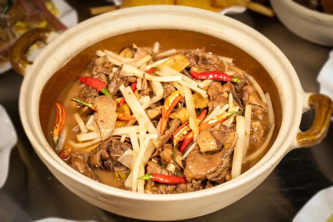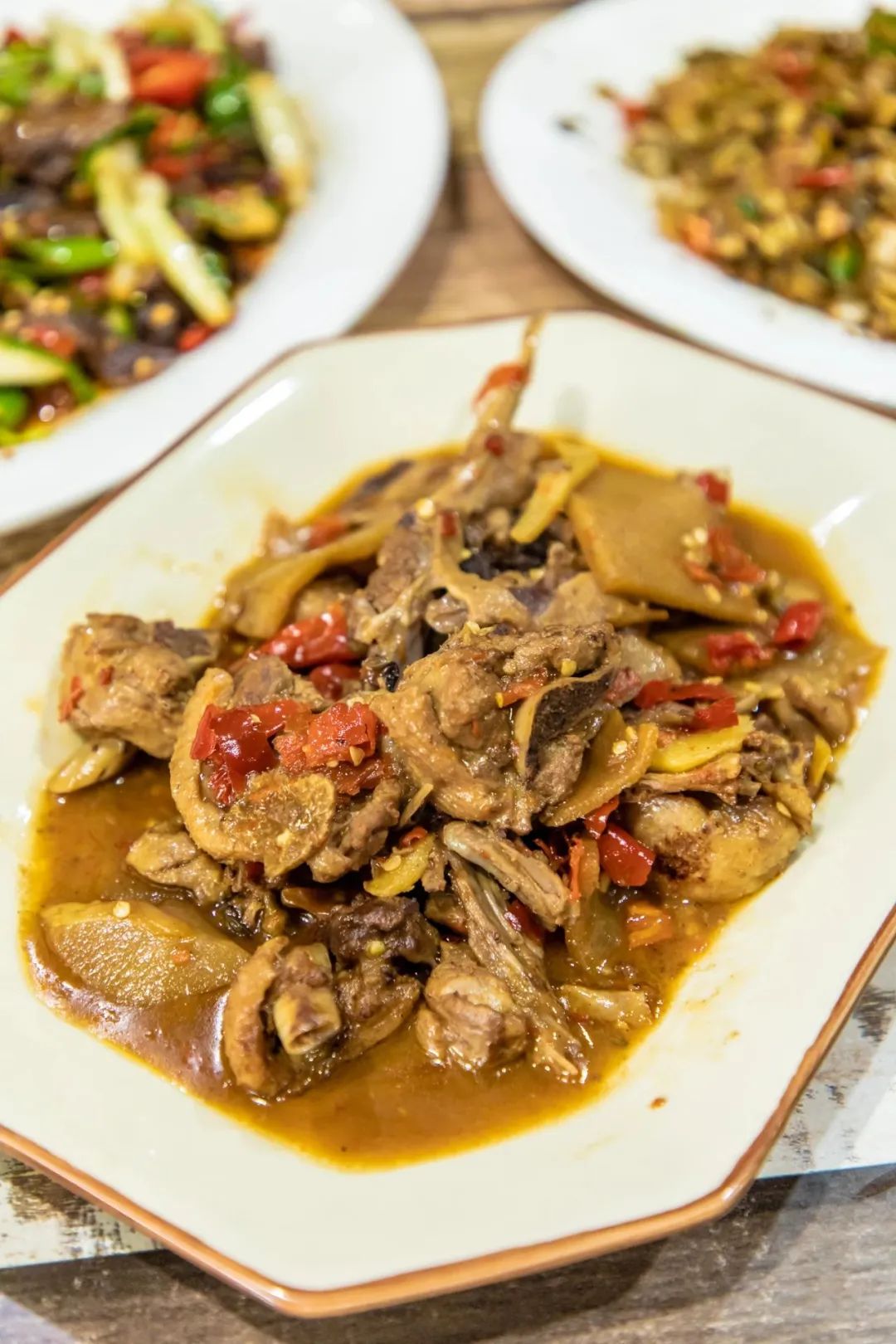 和当地朝天椒翻炒焖煮而成的梅岭鹅王