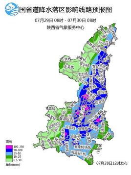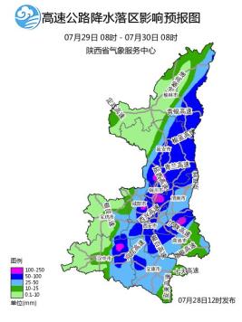 7月29-30日陕西省中东部将有大到暴雨,局地大暴雨,期间伴有短时暴雨、雷暴大风等强对流天气。需注意强降水和对流天气引起的城市内涝、山洪、地质灾害、中小河流洪水对交通、旅游、城市安全的影响。另外强降雨对救灾不利,请救灾人员及时关注当地天气变化。