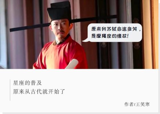 没想到吧,就连苏轼也认为自己命途多舛是拜星座所赐,算是星座信奉者的鼻祖了。以后有人再对星座不屑一顾,你可举出苏轼:“不管你信不信,反正苏轼都信”。