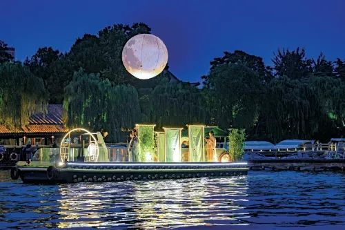 与此同时,今年天下第一泉风景区大明湖景区以泉城文化为核心,将大明湖的历史文化与传统曲艺相结合,创新地将演出舞台安置于水面之上,打造出富有艺术感的“遇见明湖”画船演艺明湖秀精彩演出。专业的戏曲、舞蹈演员在古色古香的画舫游船上呈现一场场高水准的艺术盛宴。