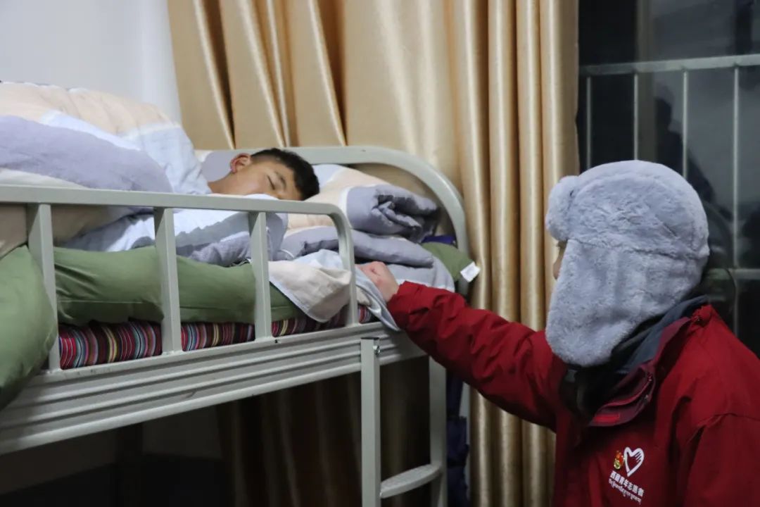 生理卫生讲座一次食堂用餐,郑镕昊与学生聊起即将到来的假期。“这次怎么回去呀?”“坐车嘛。”“公交车吗?坐多久呢?”“七八个小时吧。”“这么久呀?”学生们不好意思地笑了。这件事给郑镕昊留下了深刻的印象,后来他向学校了解到,昌都六高学生普遍来自边远农牧区,假期需要统一乘车回家,动辄七八个小时,并且往往在凌晨出发,冬天气温接近零下十度,非常辛苦。于是他想办法联系到爱心人士,捐赠了3000片暖宝宝。在寒假返乡那天,四名分队成员凌晨三点赶到宿舍楼下,挨个叫学生起床,为他们送上暖宝宝,温暖回家的旅途。