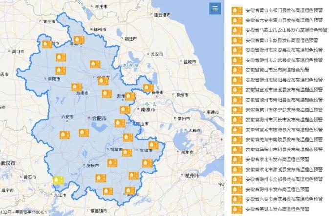安徽高温橙色预警生效中