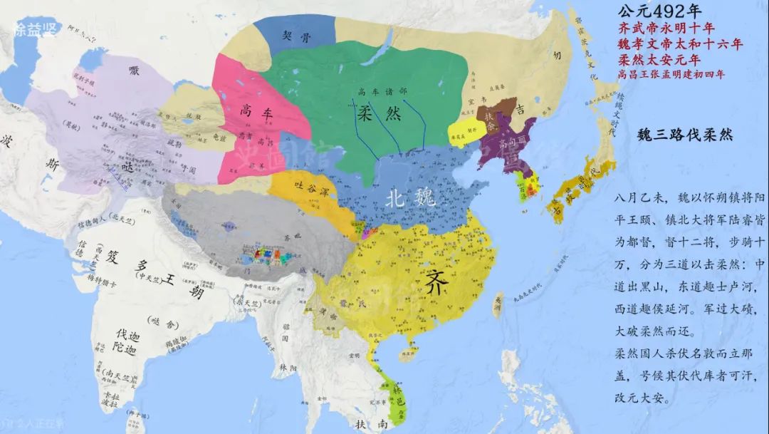 A:在「史图馆」正式成立前,吞吞就已经绘制了《中国历代疆域变化》的一些早期版本。馆子成立后,我一直担任该系列的主编,吞吞则是副主编,视频要做什么内容、按什么标准审核、最后如何把关,基本都由我和吞吞负责敲定。吞吞作为制图的主力,许多早期的地图都是他亲手画的,或者是他手把手指导出来的同学们画的。