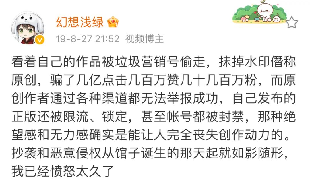 徐柘成对抄袭现象深感愤怒图源徐柘成个人微博@幻想浅绿
