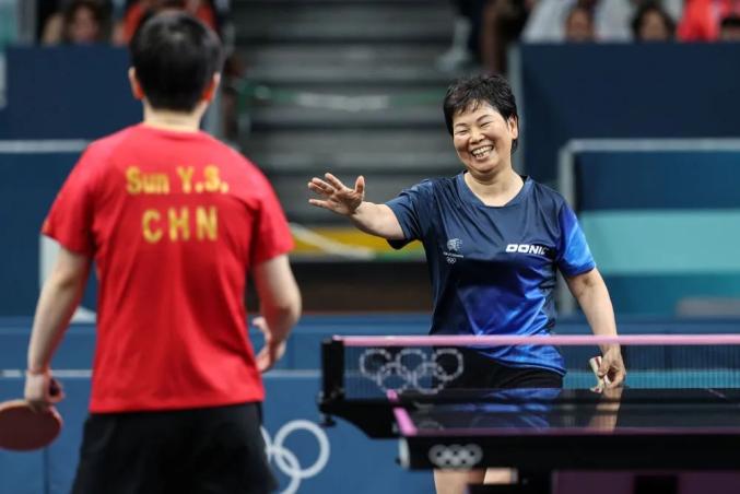 而就在这场比赛前一天,倪阿姨还在用自己的打法给即将参加混双决赛的孙颖莎和王楚钦做陪练。