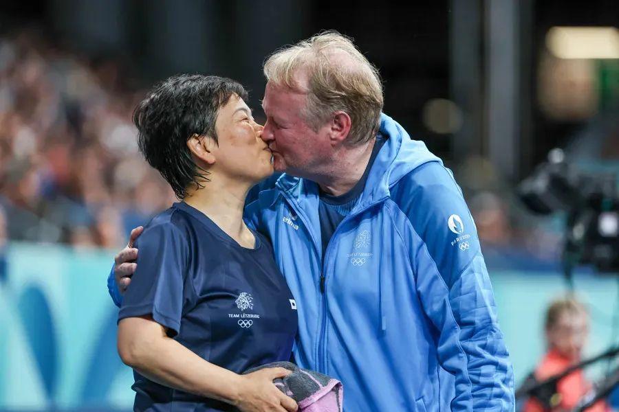 当最后一球打完,倪夏莲双臂张开,脸上未见丝毫沮丧之情。她先是依次与孙颖莎及其教练邱贻可握手致意,而后兴奋地与丈夫兼教练托米相拥庆祝。此刻,现场观众集体起立,向这位老将致以长久的掌声。