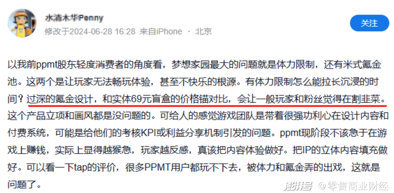 同样,泡泡玛特今年上线的第一款手游《梦想家园》虽在画面设计方面可圈可点,但在游戏机制设计和角色塑造方面却表现不足,更趋向于有限自由和高付费的商业逻辑。