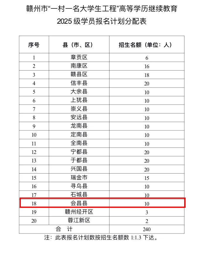 根据《江西省农业农村厅 江西省教育厅 江西省财政厅关于纵深推进“一村一名大学生工程”的实施意见》(赣农字〔2020〕50号)要求,现就做好全省“一村一名大学生工程”高等学历继续教育(专升本)2025级学员招收工作通知如下。
