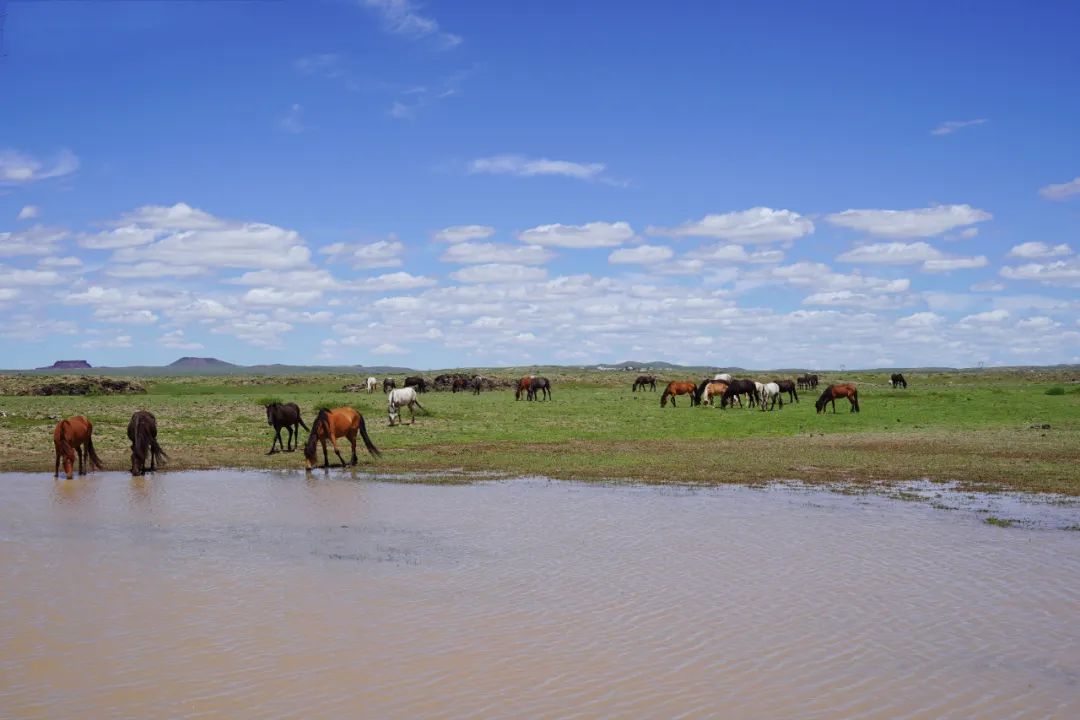 迎来内蒙古大草原短暂的旺季,坝上美景绵延不绝,被车辙碾过的沙漠,好像华夫饼,相机卡嚓声就像嗒嗒嗒的秒针停不下来。