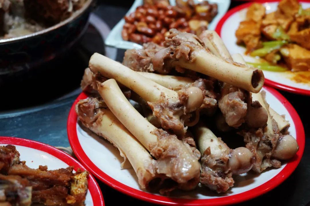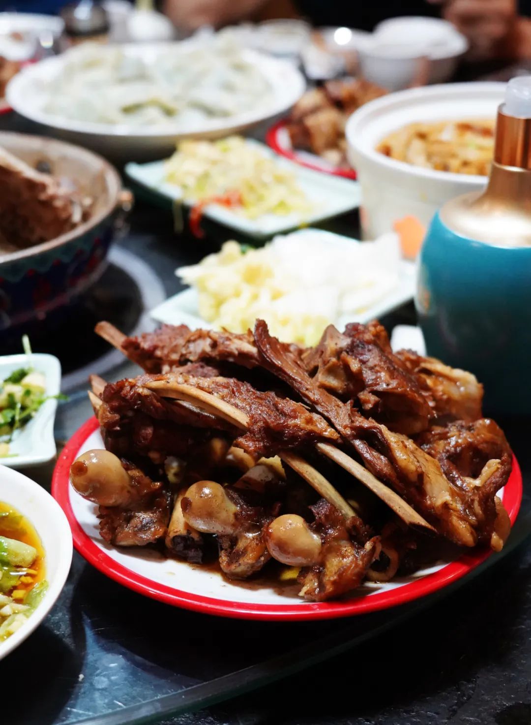 牛街的烤串,鄂尔多斯的阿尔巴斯山羊肉,黄花驿站的烤羊腿,群群骨头馆的羊骨头、羊香辣脊骨……走到哪儿,就让当地的物产来决定我们的菜谱。