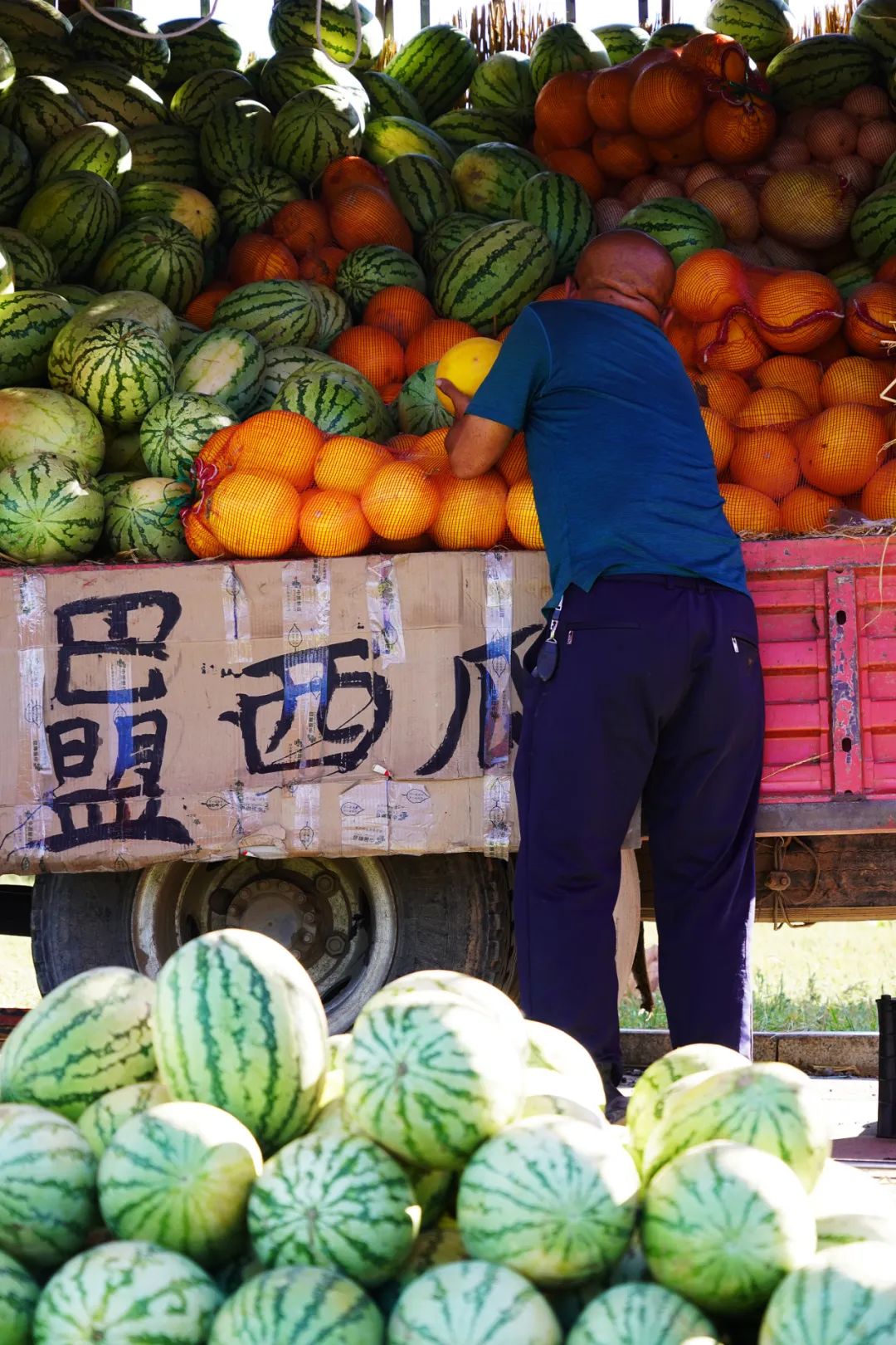 在内蒙,随性而发,路边碰到卖瓜的,老板给破好,蹲下来就开始吃;