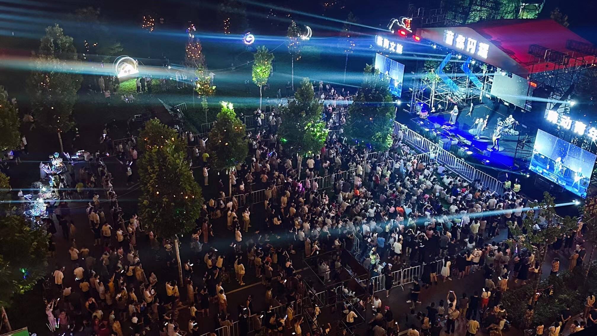 在临朐县文化艺术中心的广场上,一场夜间演唱会正拉开帷幕,全力彰显临朐“夜IP”的非凡活力。夜色律动,繁华如诗,在“音你闪耀” 2024临朐县首届夏日音乐汇的现场,听着熟悉的歌曲,感受不同的夏日气息,不断升温的夜间消费不仅打造出了有品质、有格调的“夜经济”,也让整座城市变得更加繁荣、热闹。
